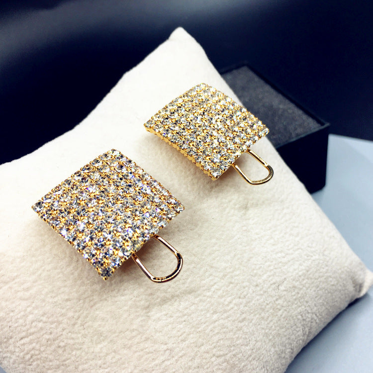 women design Ear Clip Luxurious Exceed Well Drilled Block Gold Protect Color Will Ear Nail Square Earrings Woman